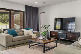 Upstairs, you'll wake to breathtaking sunrises over Mount Macedon from the grand master suite, a true parents' retreat of generous proportions with a walk-in robe and a luxurious ensuite featuring a double vanity, spa bath and oversized shower. A spacious upstairs living area offers flexibility for a teenager's retreat, additional study, or play zone, while three further bedrooms, all with built-in robes, are serviced by a stylish family bathroom and powder room.